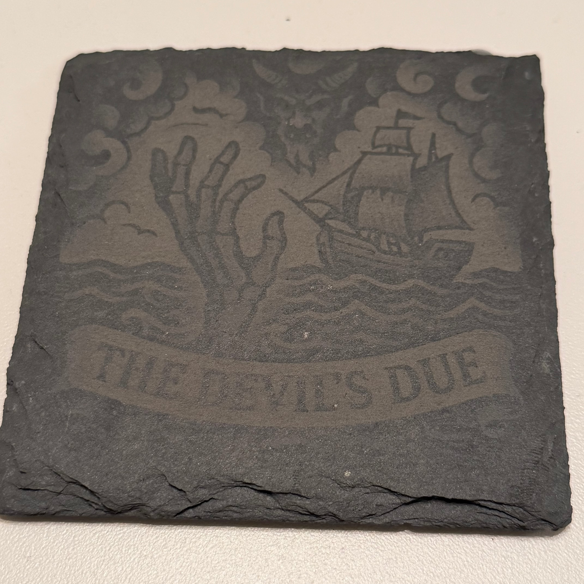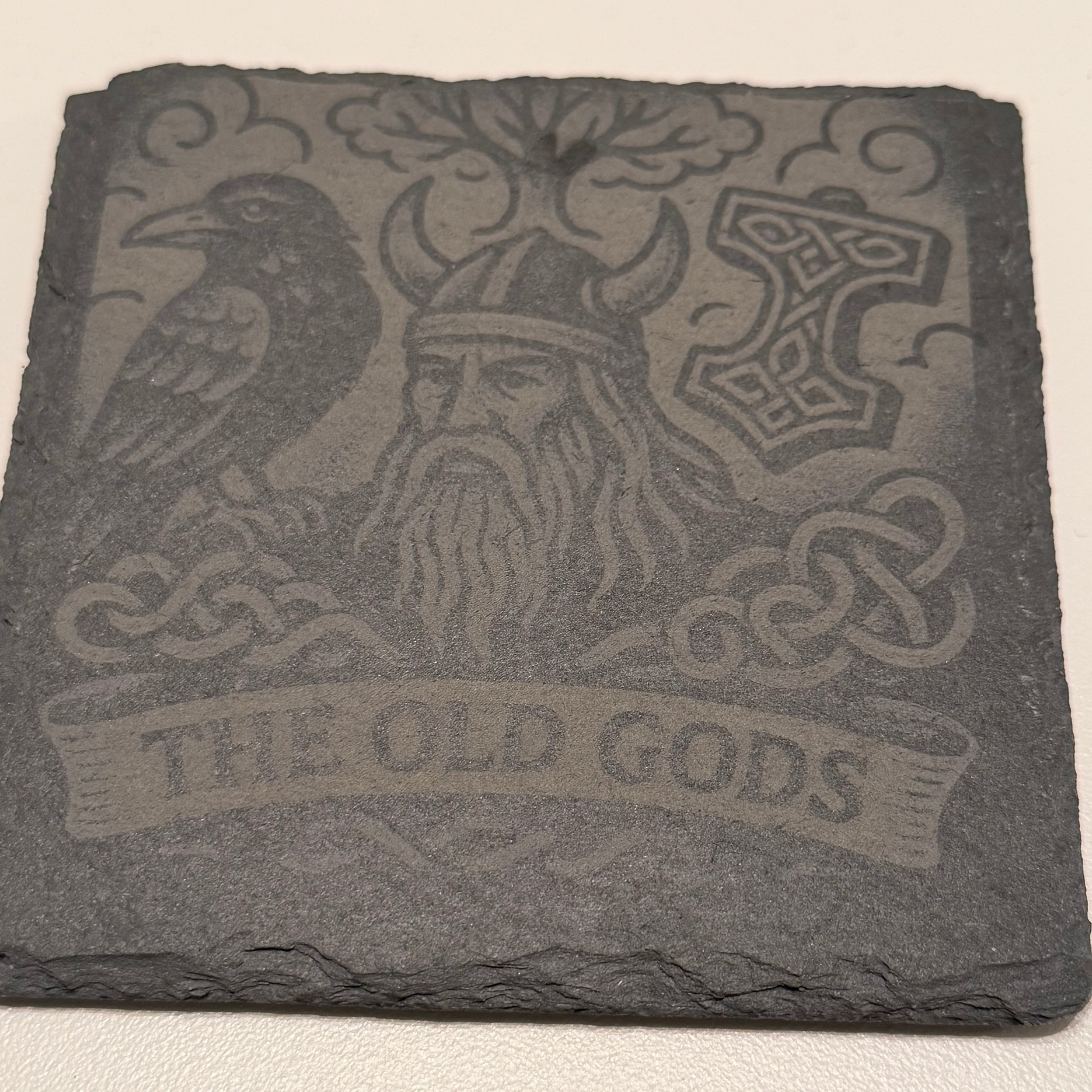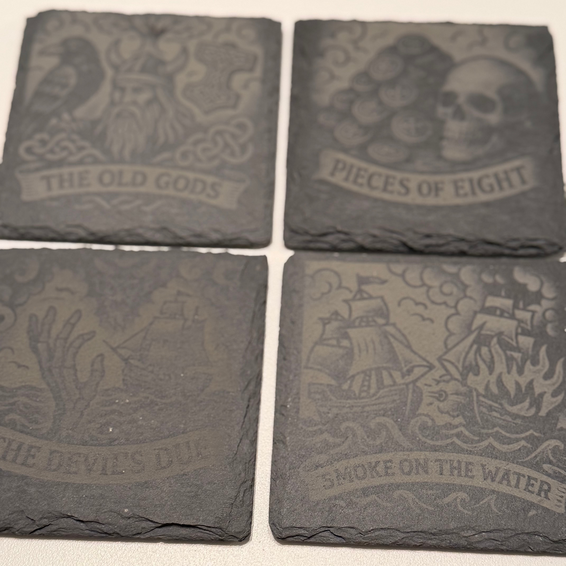 Unearth the forgotten myths and dark folklore of the old world with this handcrafted set of engraved slate coasters. Each piece in this quartet carries its own story, carved into natural stone with deep, high-contrast engraving for a bold and timeless finish.