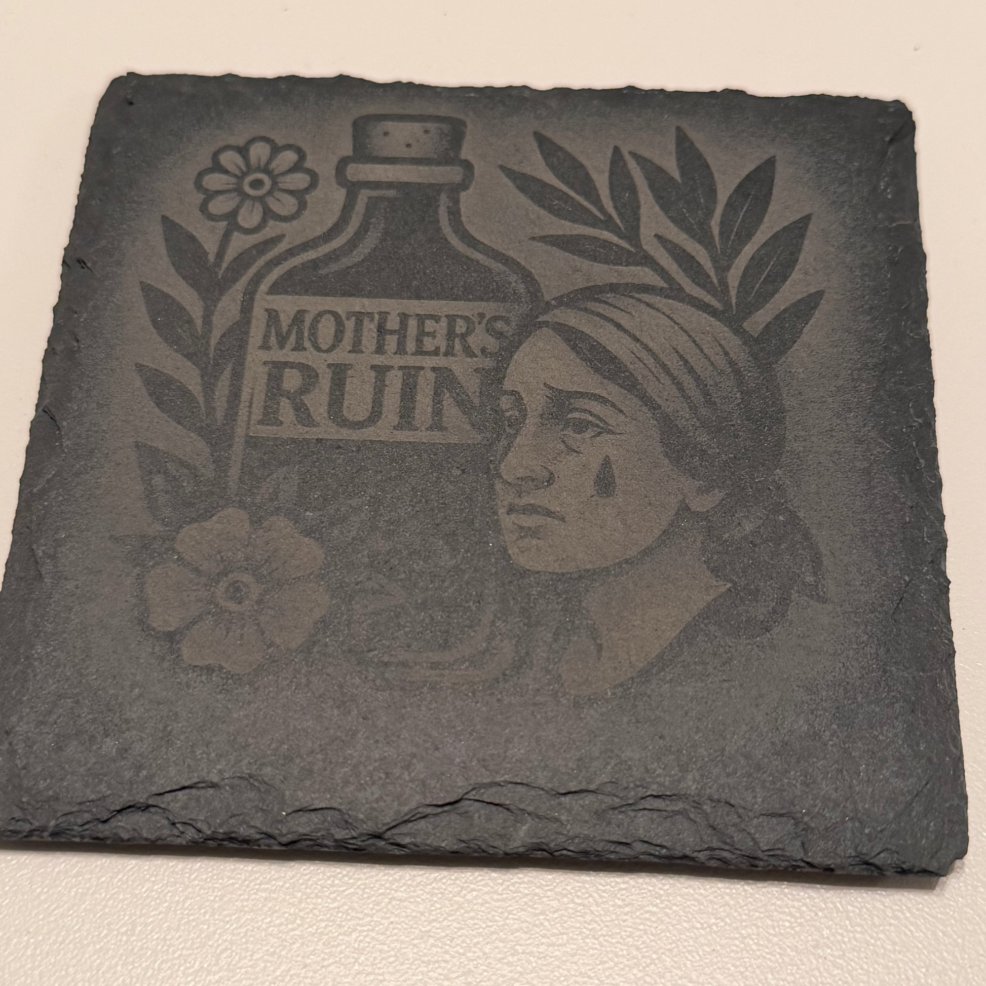 Add a touch of dark vintage charm to your home bar with this handcrafted set of four premium slate coasters, each engraved with a bold tattoo-style design inspired by old-world folklore and spirit legends. Perfect for whisky lovers, cocktail enthusiasts, or anyone who appreciates striking gothic artwork.