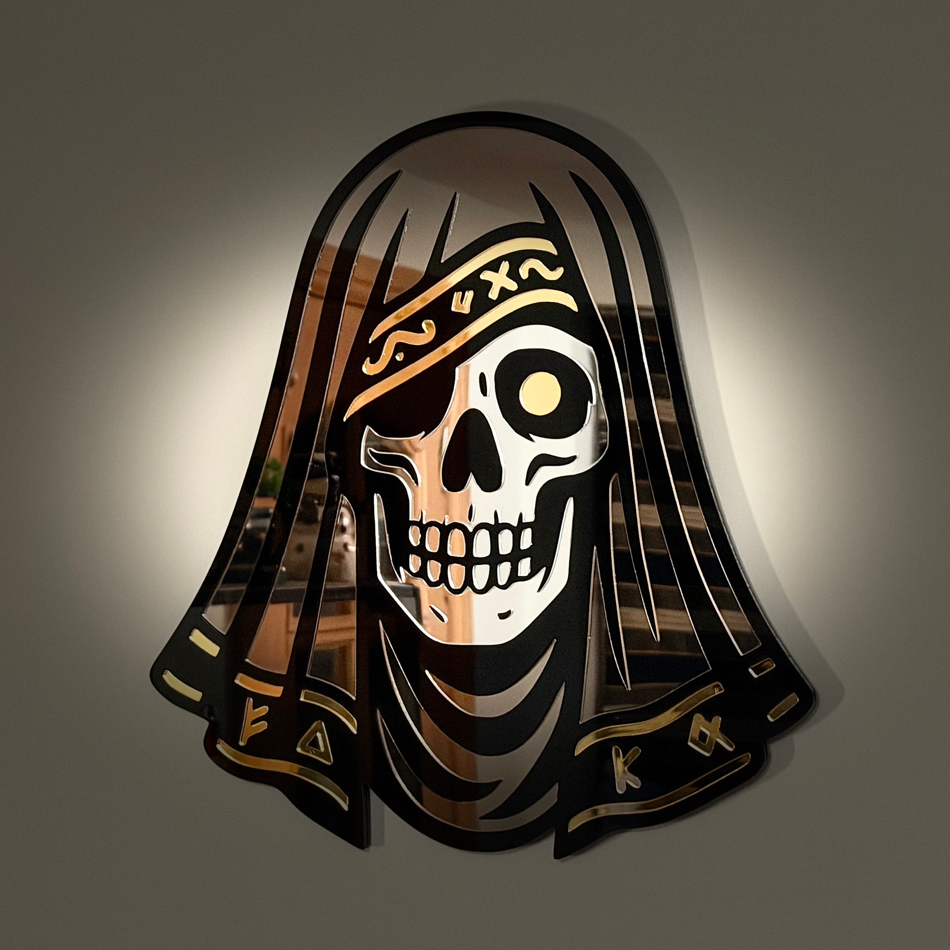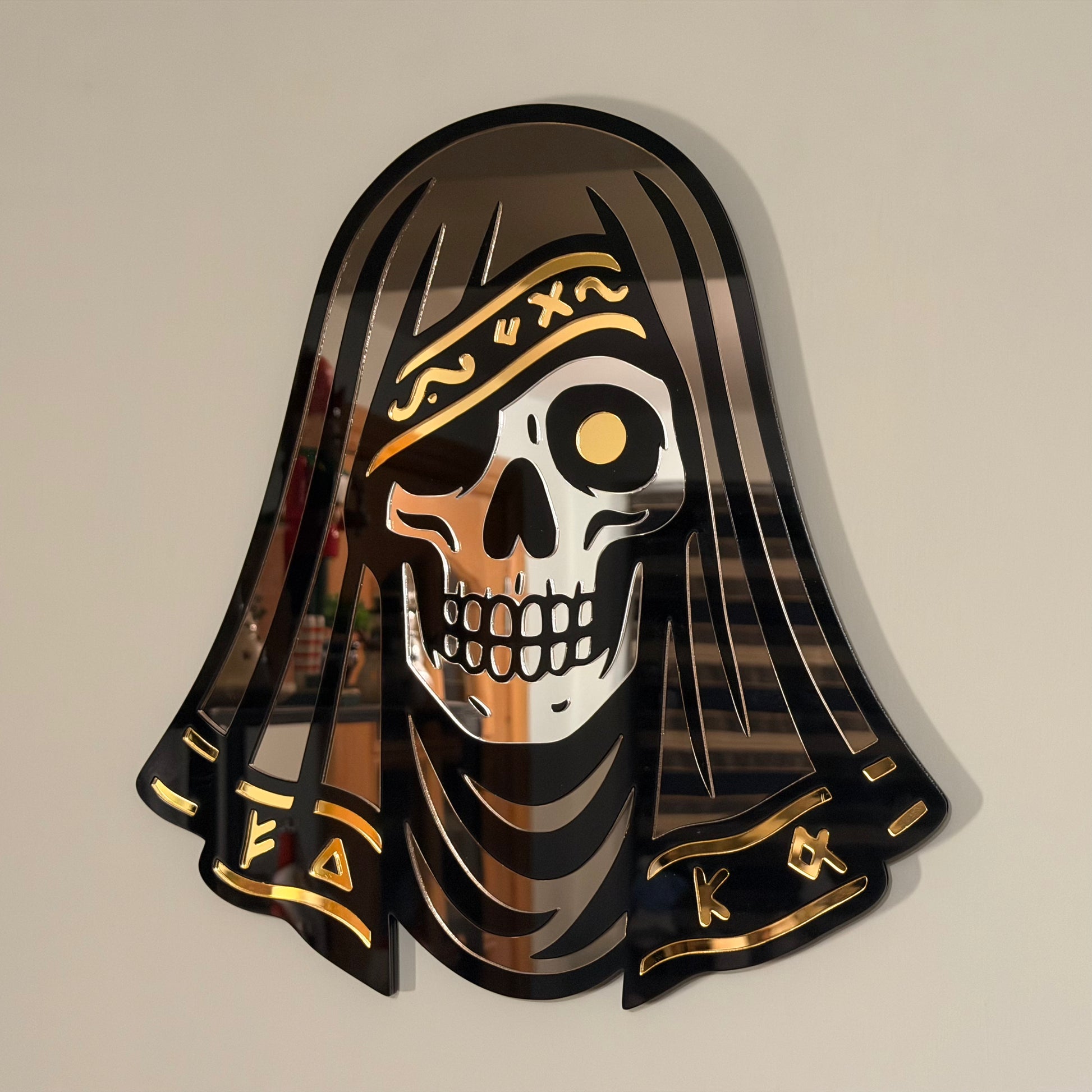 The Veiled Skull – Tri-Tone Mirror Laser-Cut Wall Art | Occult Psychopomp Symbol